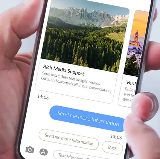RCS business messaging upgrades traditional SMS with branded sender verification, images, carousels, suggested replies, and real-time engagement. Ideal for enterprises seeking to boost conversions, build trust, and deliver app-like experiences, without the app.
